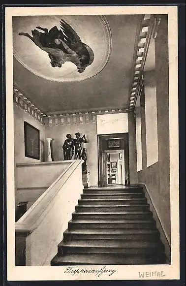 AK Weimar, Goethe Nationalmuseum, Treppenaufgang
