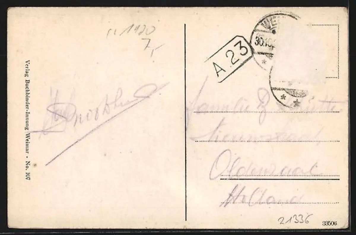 alte Ansichtskarte, gelaufen, Briefmarke entfernt, rückseitig Oberflächenschaden, guter Zustand