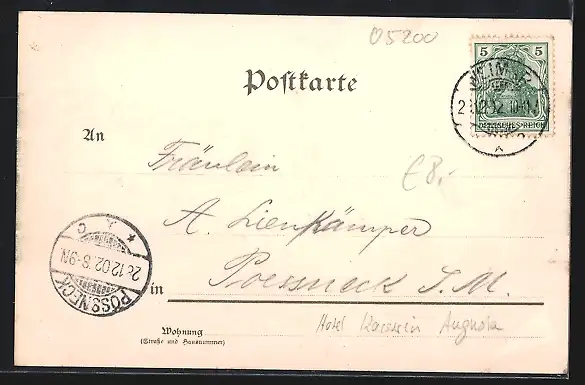 alte Ansichtskarte, gelaufen 1902, guter Zustand