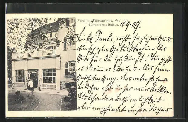 AK Weimar, Pension Töchterhort, Terrasse mit Balkon