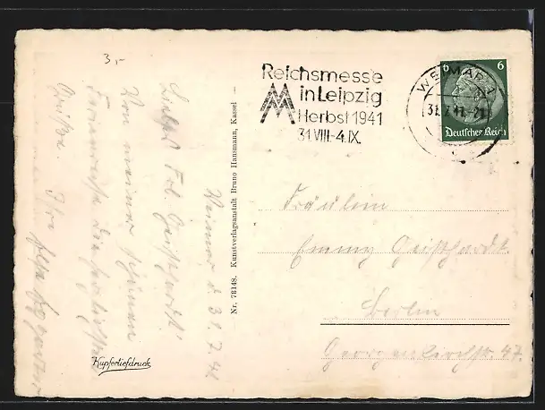 alte Ansichtskarte, gelaufen 1941, Stempelspur, guter Zustand