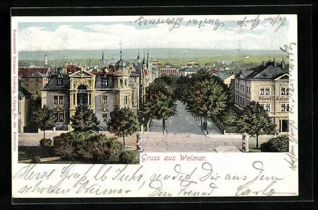 AK Weimar, Strassenpartie mit Hotel Kaiser