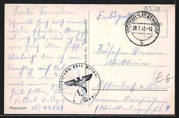 alte Ansichtskarte, gelaufen 1942 als Feldpost, guter Zustand