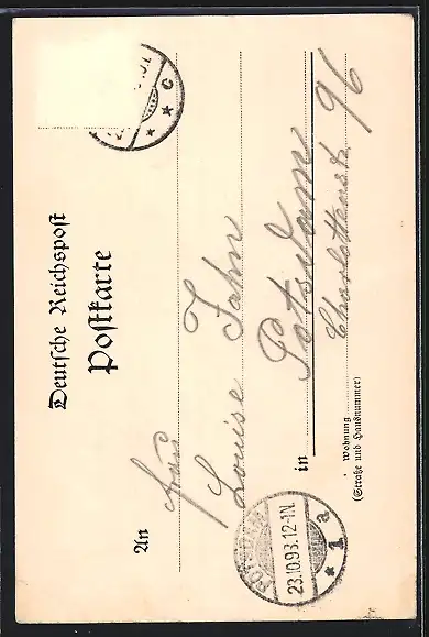 alte Ansichtskarte, gelaufen 1898, Briefmarke entfernt, rückseitig Oberflächenschaden, Eckknicke oben und re. unten, guter Zustand