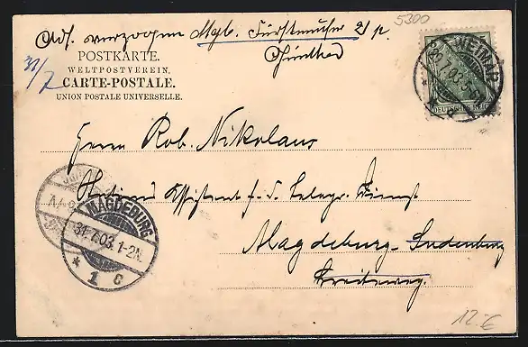 alte Ansichtskarte, gelaufen 1903, Stempelspur, guter Zustand