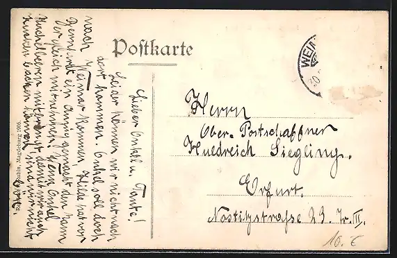 alte Ansichtskarte, gelaufen, Briefmarke entfernt, Stempelspur, guter Zustand