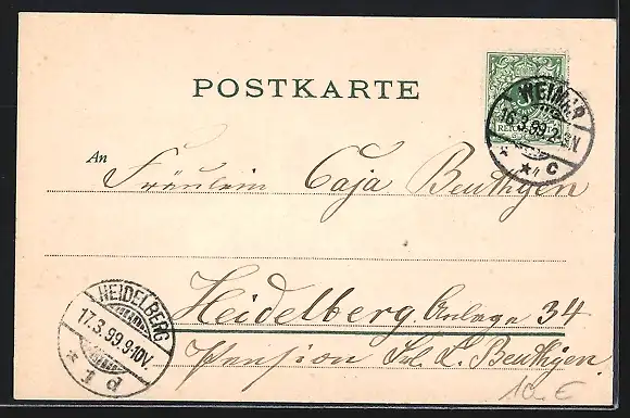 alte Ansichtskarte, gelaufen 1899, guter Zustand