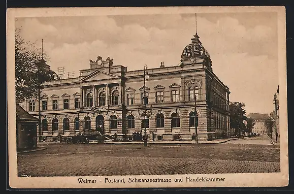 AK Weimar / Thüringen, Postamt, Schwanseestrasse und Handelskammer