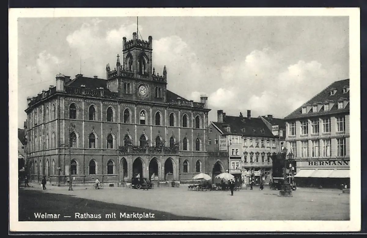 AK Weimar / Thüringen, Rathaus mit Marktplatz