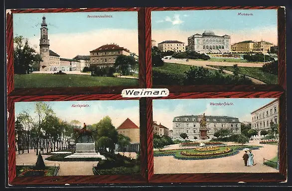 AK Weimar / Thüringen, Residenzschloss, Museum, Karlsplatz, Watzdorfplatz
