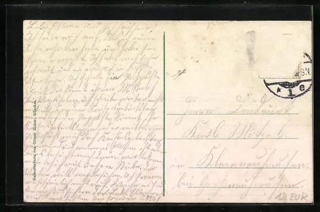alte Ansichtskarte, gelaufen, Briefmarke entfernt, rückseitig Oberflächenschaden, Ecken bestoßen, guter Zustand