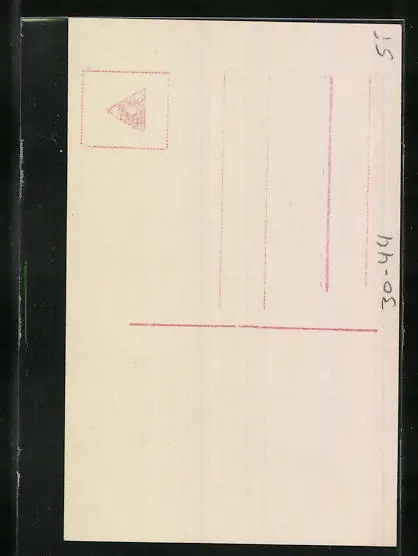 Personenbezogene Daten auf der Rückseite der Karte wurden durch blauen Textmarker unkenntlich gemacht. Die blauen Stellen sind auf die Vorderseite durchgeweicht und wirken sich negativ auf das Postkartenfoto aus