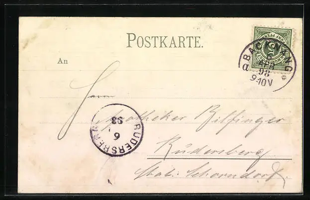 alte Ansichtskarte, gelaufen 1898, guter Zustand