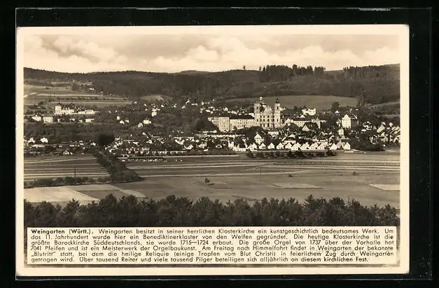 AK Weingarten (Württ.), Totalansicht mit Klosterkirche