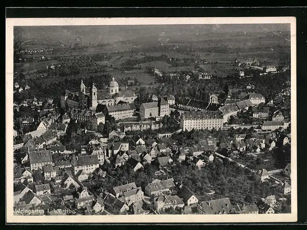 AK Weingarten i. Württbg., Fliegeraufnahme des Ortes