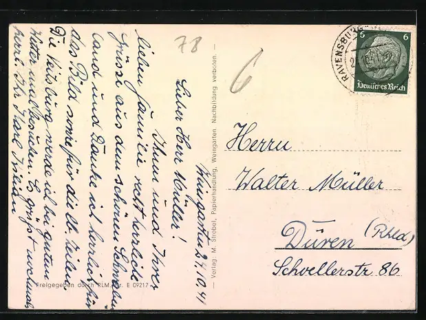alte Ansichtskarte, gelaufen 1941, Eckknick re. oben, guter Zustand