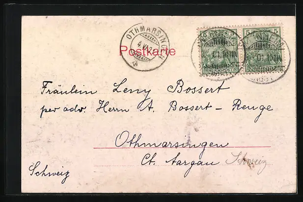 alte Ansichtskarte, gelaufen 1901, Eckknicke re. oben, Oberflächenschaden, guter Zustand