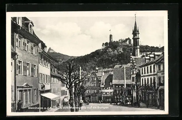 AK Weinheim a. d. B., Blick vom Marktplatz auf die Burgen