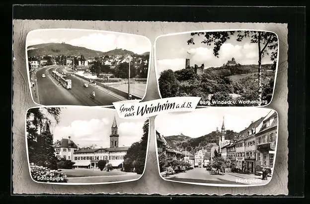 AK Weinheim a. d. B., Schlosspark, Marktplatz, Burg Windeck