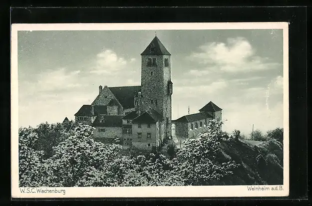AK Weinheim a. d. B., Wachenburg aus der Vogelschau