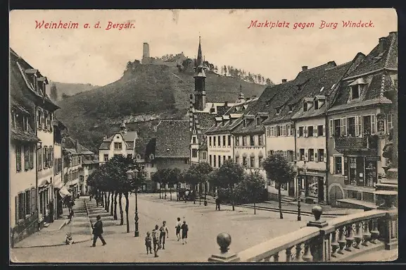 AK Weinheim a. d. Bergstr., Marktplatz gegen Burg Windeck