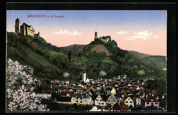 AK Weinheim a. d. Bergstr., Ortsansicht mit Burgruine