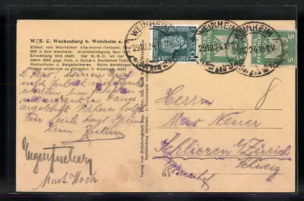 AK Weinheim i. B., Blick zur Wachenburg