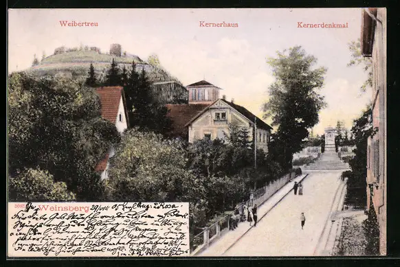 AK Weinsberg, Ortspartie mit Weibertreu, Kernerhaus und Kernerdenkmal