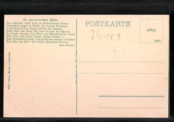 Weitere Ansichtskarten zur Postleitzahl 74189