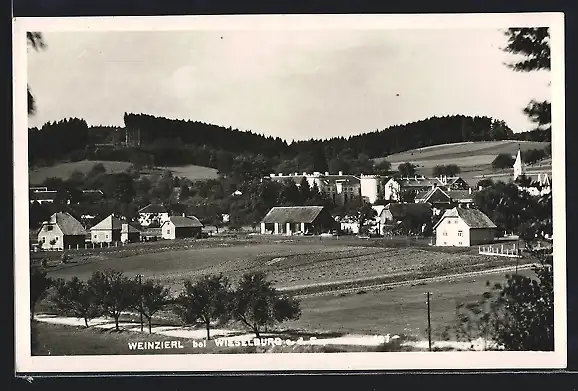 AK Weinzierl bei Wieselburg, Ortspartie mit Kirche