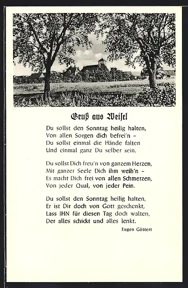 AK Weisel / Rhein, Blick zur Kirche im Ort, Heimat-Gedicht