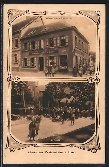 AK Weisenheim a. Sand, Gasthaus zur Krone, Obstmarkt am Markttag