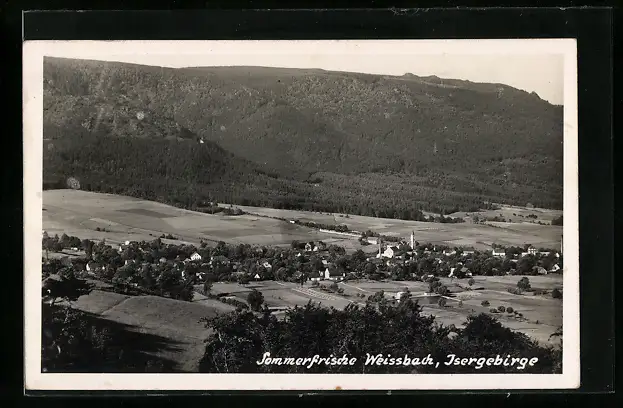 AK Weissbach i. Isergebirge, Totalansicht aus der Vogelschau