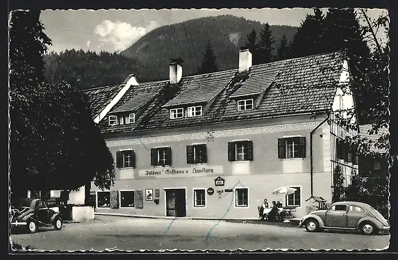 AK Weissbriach, Waldner`s Gasthof mit Autos