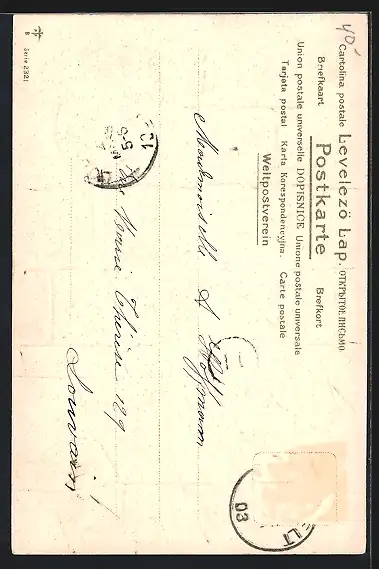 alte Ansichtskarte, gelaufen 1903, Briefmarke entfernt, rückseitig Oberflächenschaden, guter Zustand