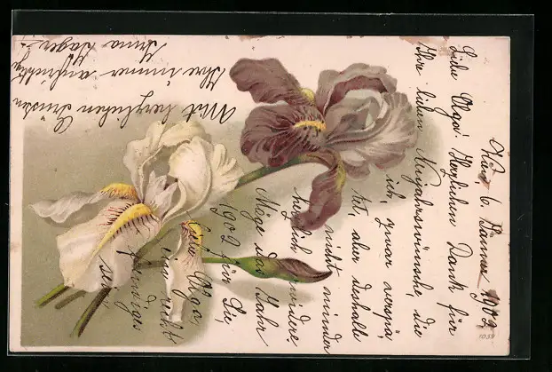 AK Weisse und Braune Blume