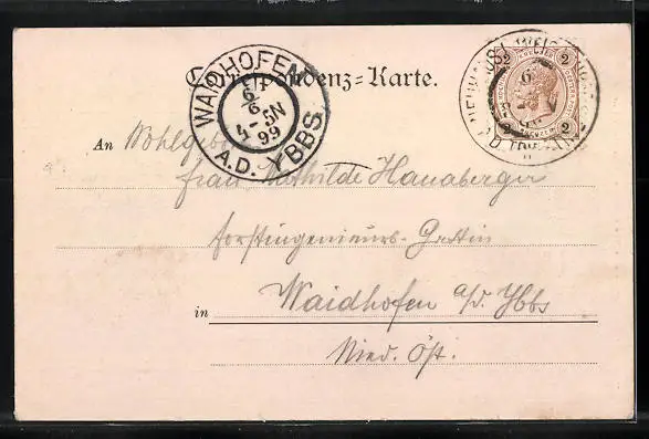 alte Ansichtskarte, gelaufen 1899, Stempelspur, guter Zustand