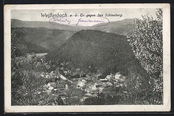 AK Weissenbach /Triesting, Ortsansicht gegen den Schneeberg
