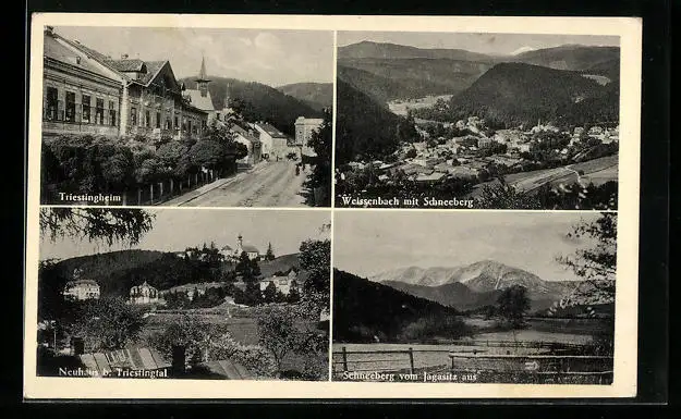 AK Weissenbach / Triesting, Triestingheim, Panorama, Blick vom Jagasitz auf den Ort