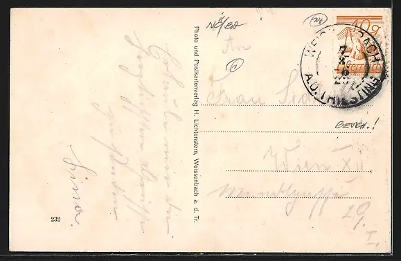 alte Ansichtskarte, gelaufen, minimaler Einriss oben mittig, guter Zustand