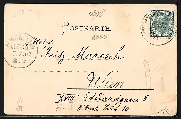 alte Ansichtskarte, gelaufen 1902, guter Zustand