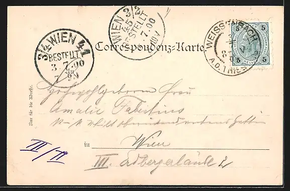 gelaufen 1900, Eckknick li. unten, guter Zustand