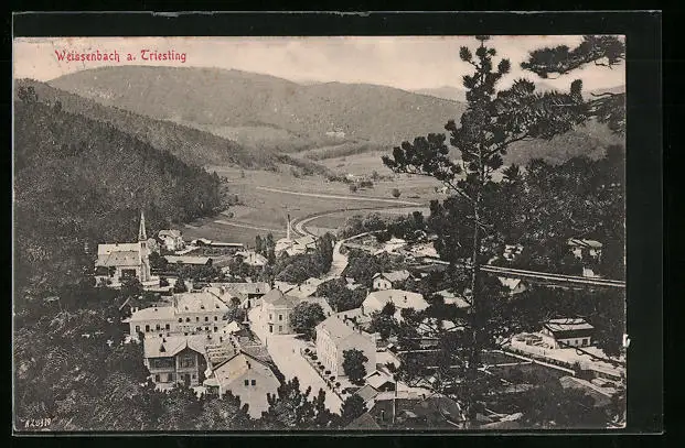 AK Weissenbach a. Triesting, Teilansicht mit Kirche und Strassenpartie