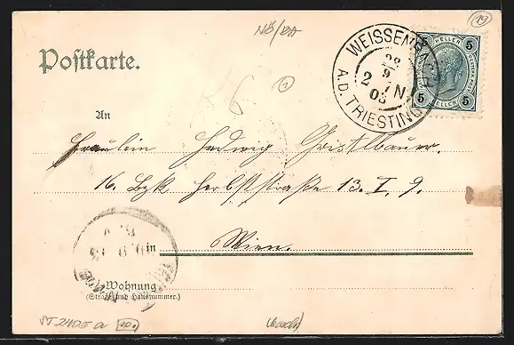gelaufen 1903, Eckknicke li. oben u. re. unten, guter Zustand