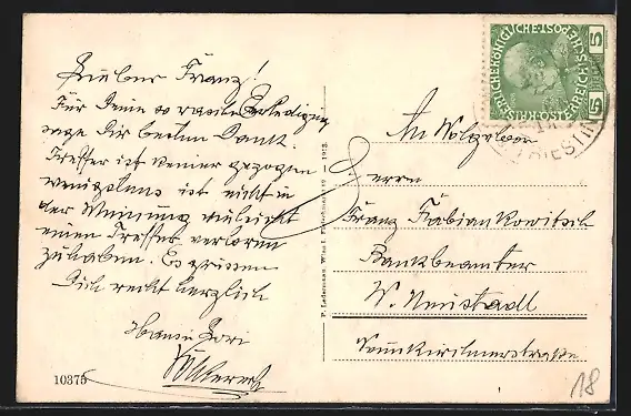alte Ansichtskarte, gelaufen 1914, guter Zustand