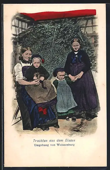 AK Weissenburg, Elsässer Familie in Trachten, Mutter mit drei Töchtern