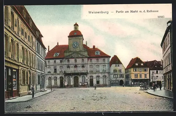 AK Weissenburg, Strassenpartie am Markt mit dem Rathause