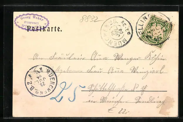gelaufen 1904, rückseitig Klebe- und Papierreste, guter Zustand