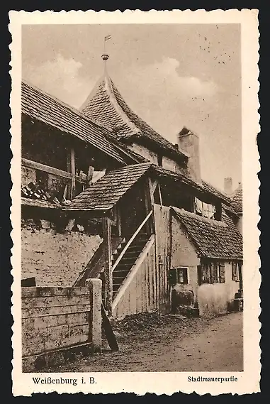 AK Weissenburg i. B., Wegpartie an der Stadtmauer