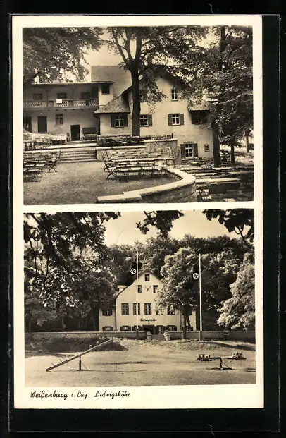 AK Weissenburg i. Bay., Spielplatz und Terrasse Gasthaus Ludwigshöhe
